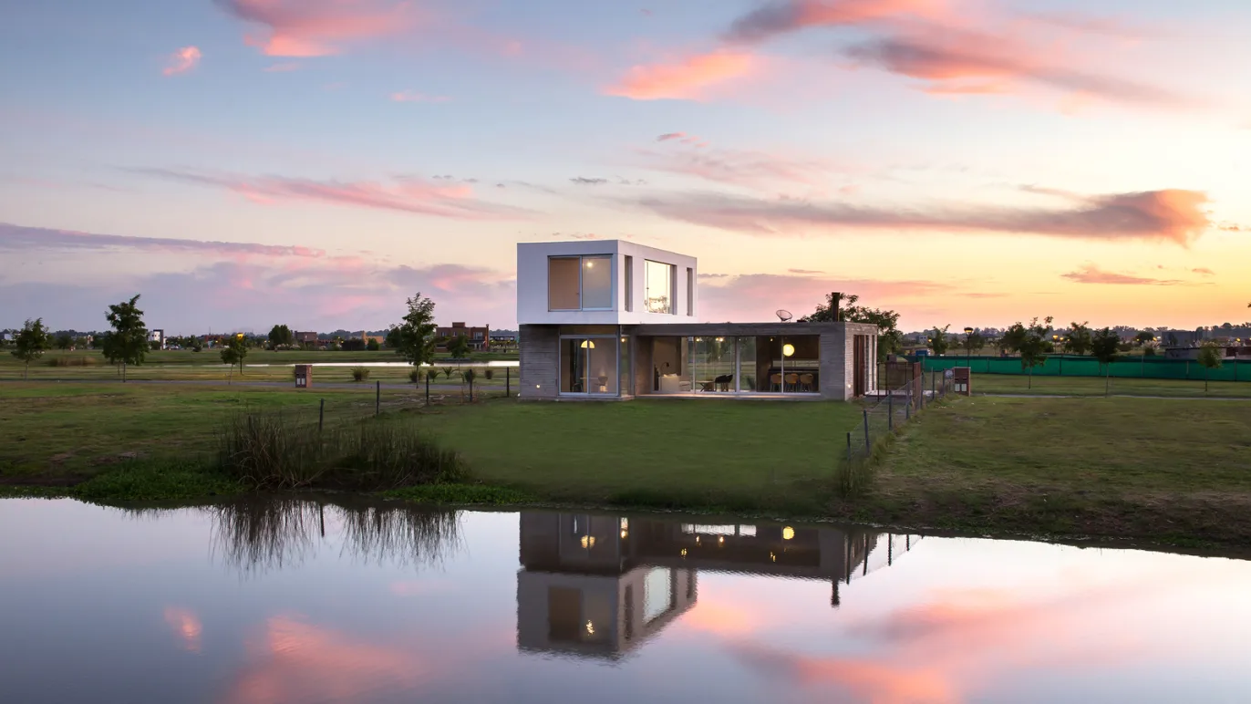 La Casa CG342 se concibió a partir del encargo de un joven profesional soltero, para ser llevada a cabo en un terreno con laguna situado en un barrio cerrado con golf.