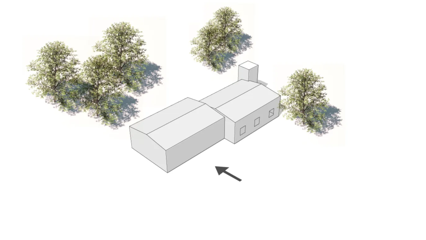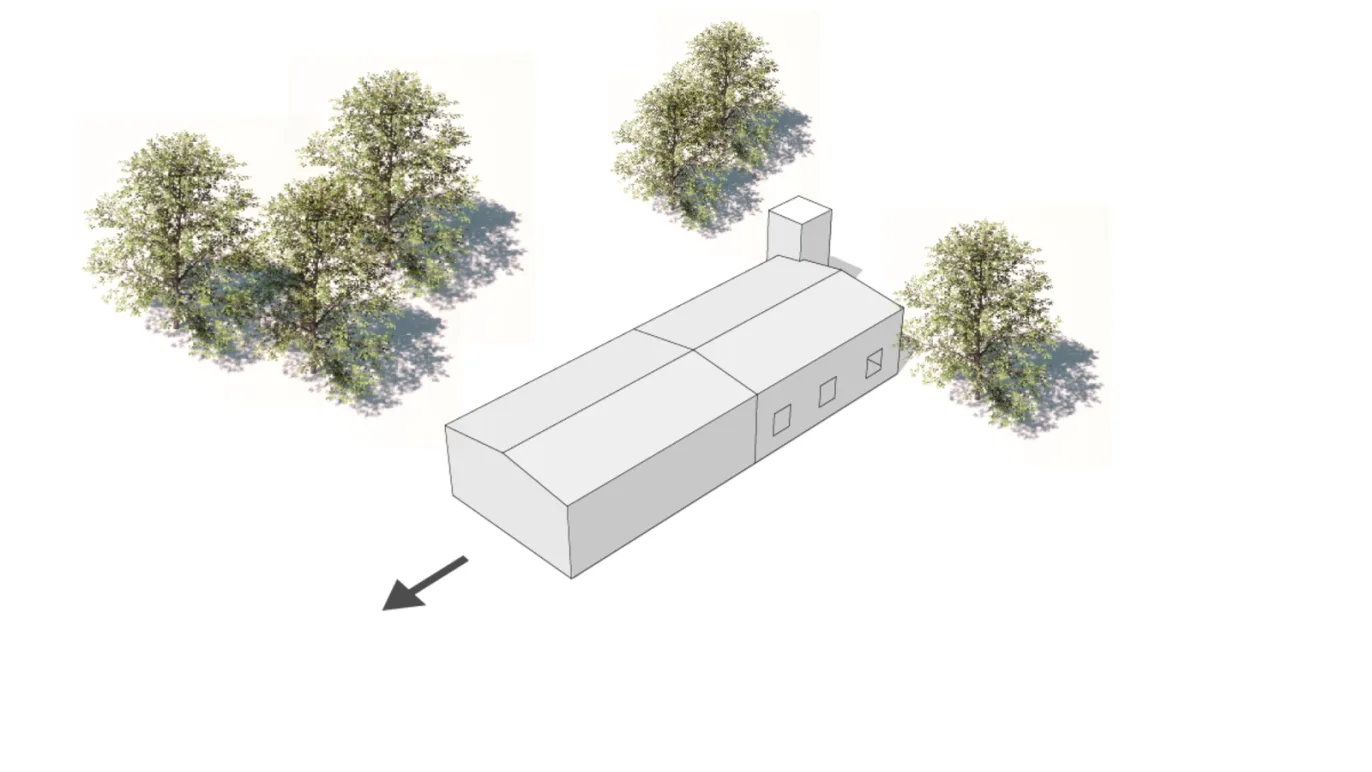 Un nuevo volumen orientado hacia el norte da lugar a los usos públicos: el estar y la cocina. Éste se desfasa de la casa existente, que alberga las habitaciones y baños, y se articula a la misma mediante una pieza de hormigón. Esta disposición maximiza el asoleamiento de los espacios principales del proyecto.