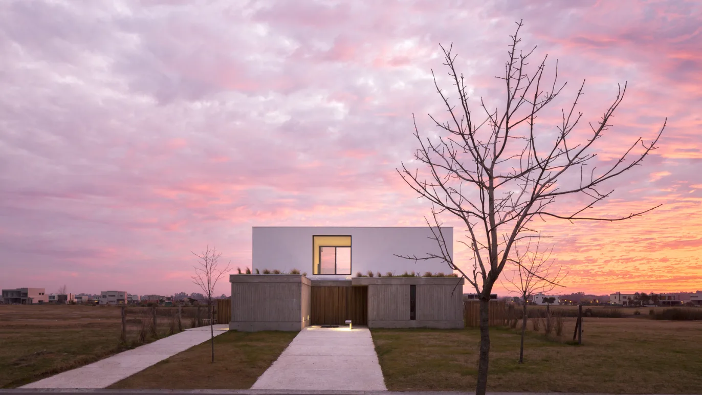 El proyecto se implanta en Escobar, en un entorno con vistas a una cancha de golf y a una laguna, un paisaje moldeado por el hombre, pero de fuerte presencia de la naturaleza, la cual nos invita a crear arquitectura y atmosfera teniendo como principales conceptos: la naturaleza como elemento generador de espacios, el vacío, la difuminación de los límites, el paisaje, los materiales nobles, la belleza.