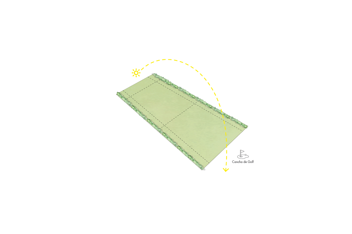 Con la premisa de un empresario que su mayor hobby es jugar al golf se proyectó una casa donde se explora la composición con volúmenes y sus materialidades, lo pesado y lo liviano, lo cerrado y lo abierto, generando de esta forma un diseño de mucha simpleza y belleza en sintonía con el paisaje.