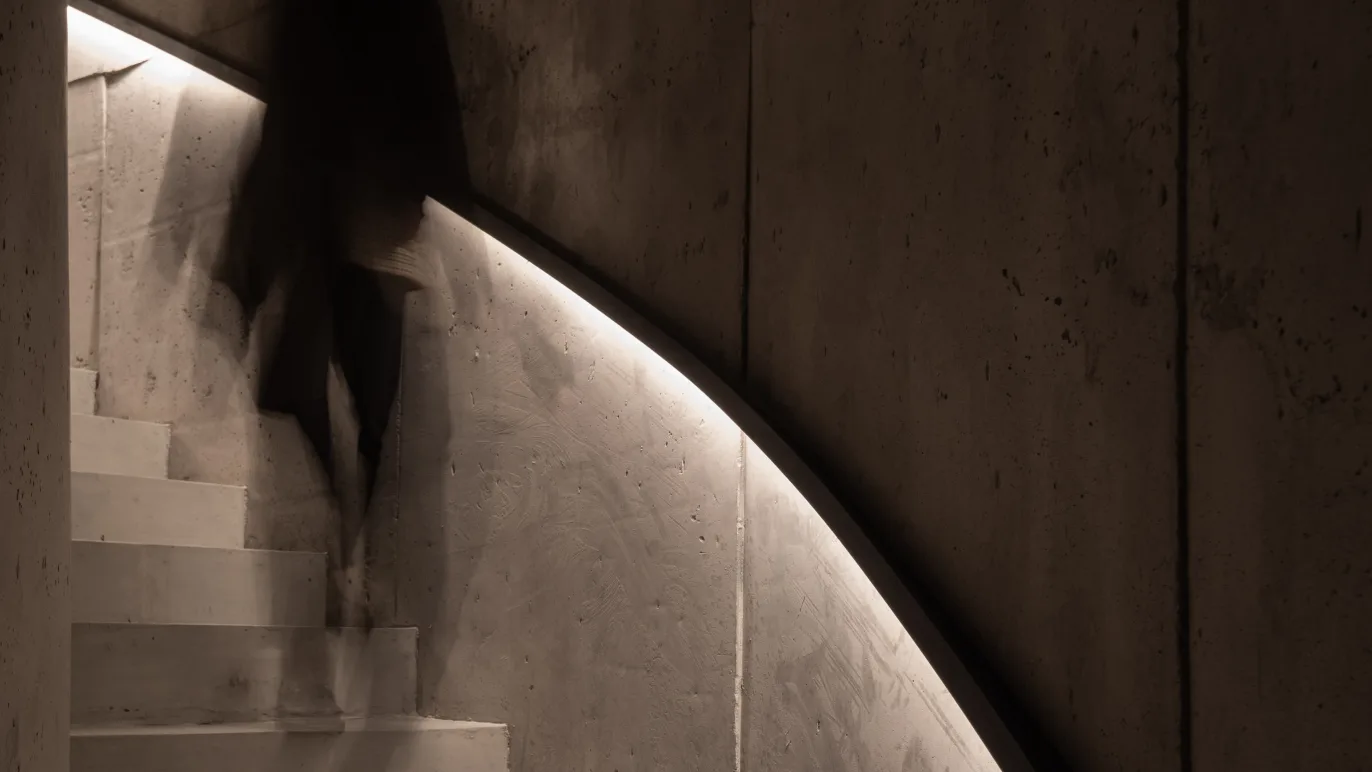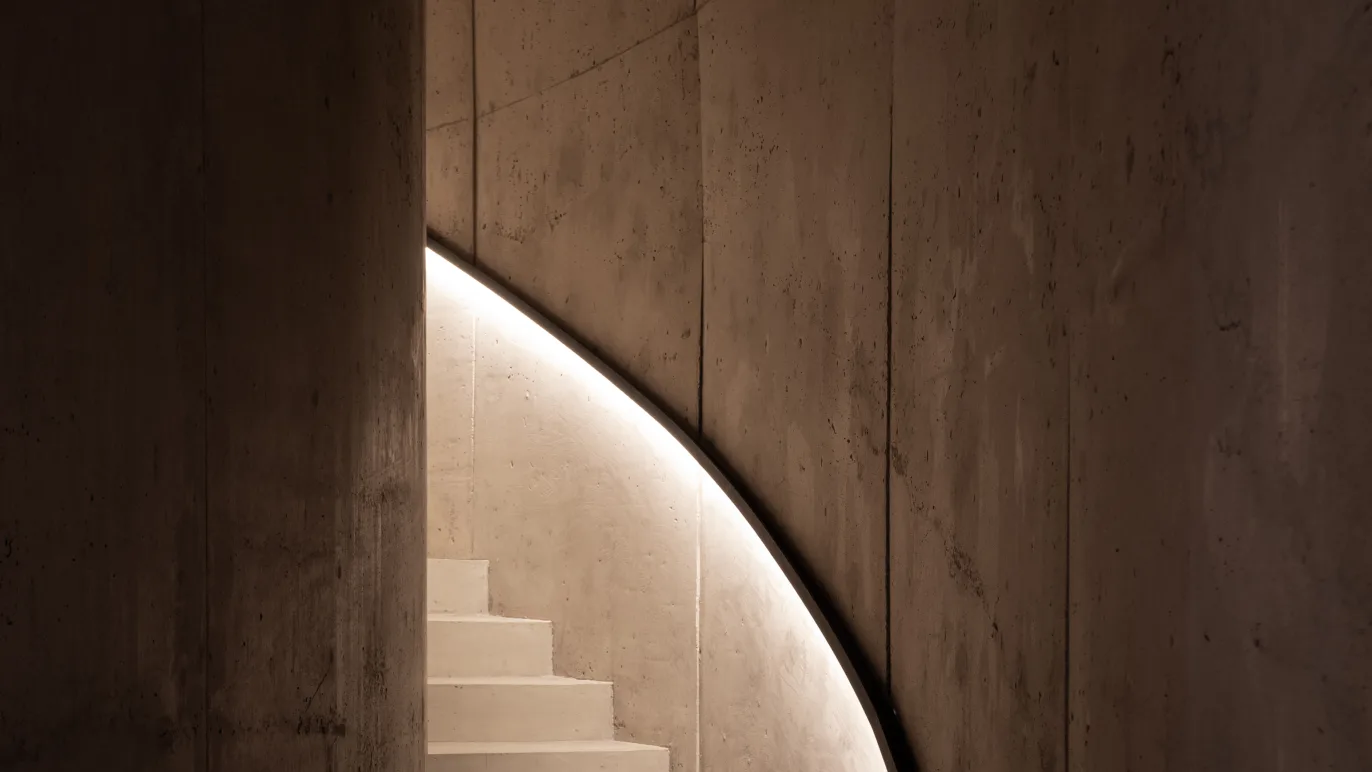 Each section of the spiral enhances the entry of natural light and transforms the perception of scale: social areas unfold toward the open views of the landscape, while service spaces are accommodated in the tighter folds. This continuity between levels creates an interior landscape in motion, where each space anticipates the next.
