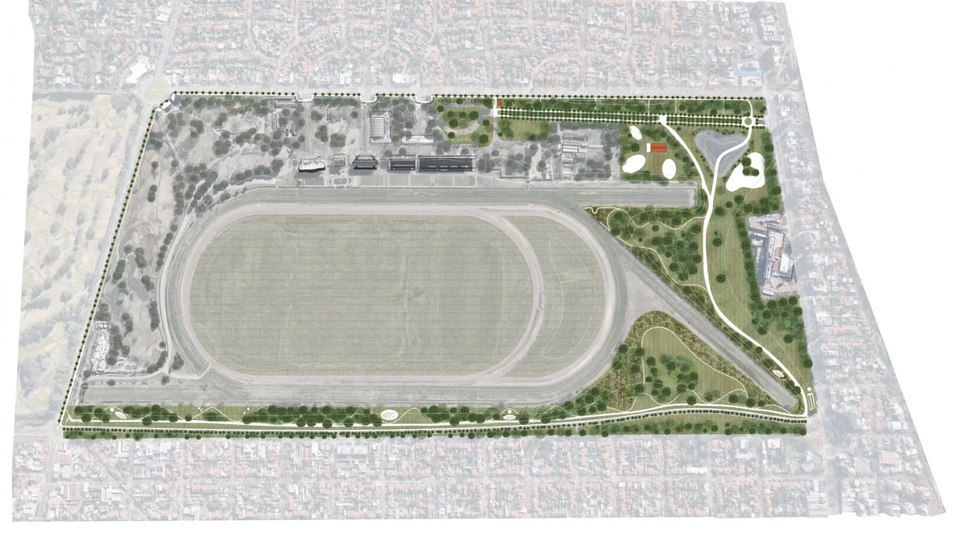 Se buscó generar una intervención de impacto mínimo en el medio ambiente, de bajo costo y de respeto con el patrimonio de las instalaciones existentes del Hipódromo. Un retroceso de las cercas existentes creará un nuevo parque intencional. Ninguna línea recta conforma un espacio, por lo que permitimos que algunas cercas retrocedieran un poco más, desconectadas de la red rígida, creando nuevas configuraciones espaciales, sin perjudicar las infraestructuras existentes y su colectividad.