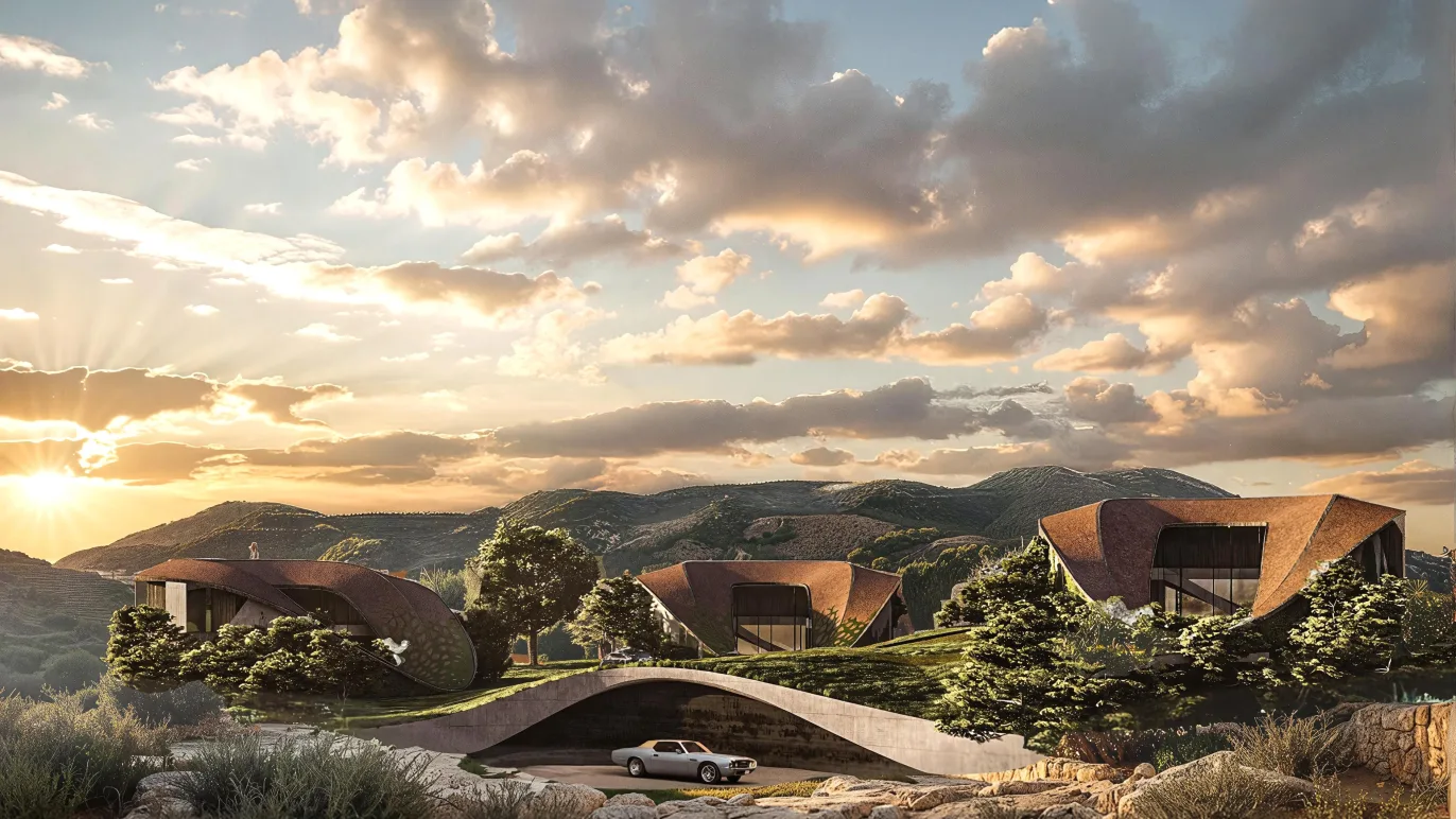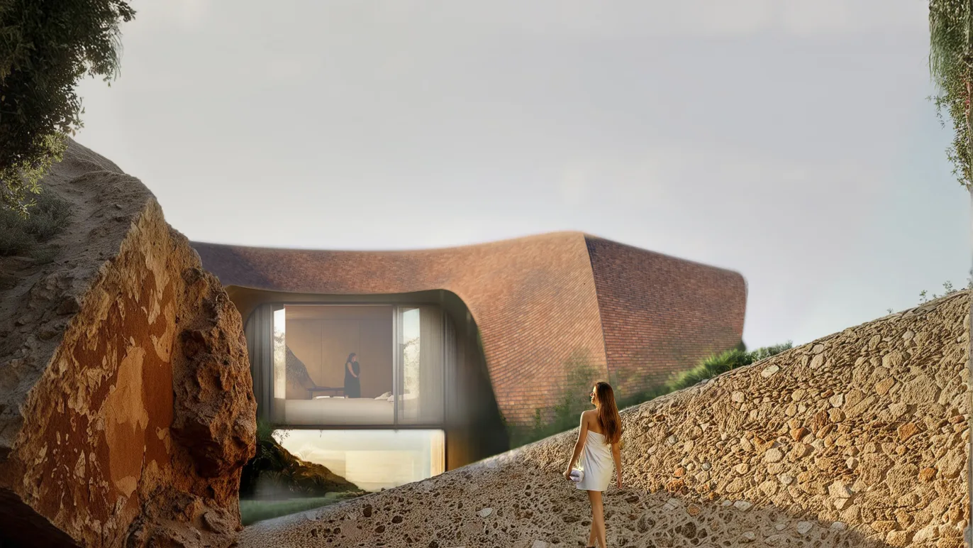 Three houses are arranged around a liquid plaza that connects public and private, nature and built form. Each volume recalls archetypal elements of the region’s architecture, but opens, folds, and shifts them to generate dynamic transitions where space expands, contracts, and transforms as one moves through it.