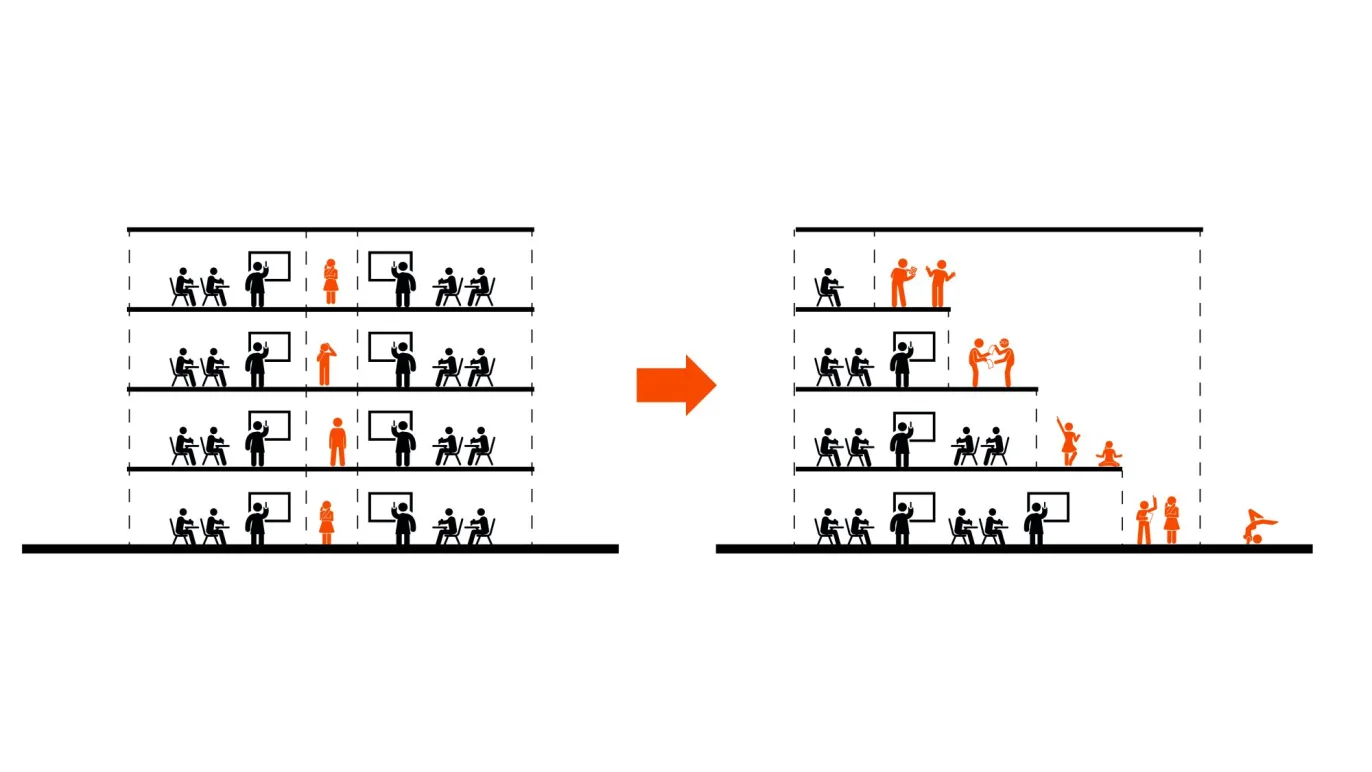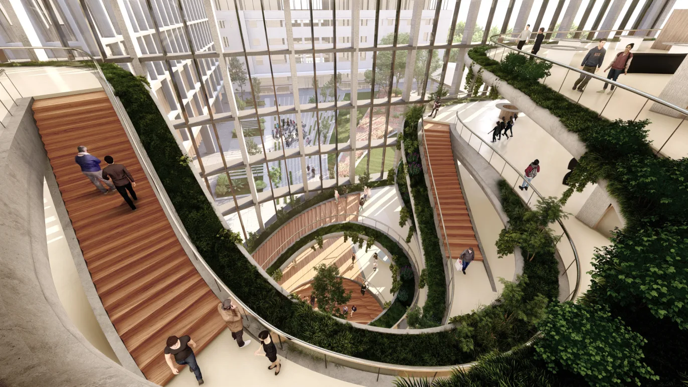Now the void generated by a large terraced atrium that acts as a bellows between the old and the new. Between the square and the program. The central idea of the project revolves around this atrium, the cores give it a framework that divides the building in two. To the south, with a view of the park "Plaza El Salvador", the classrooms. To the north and in direct connection to the central square of the University, the terraced Atrium.